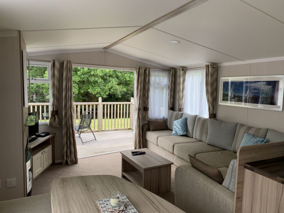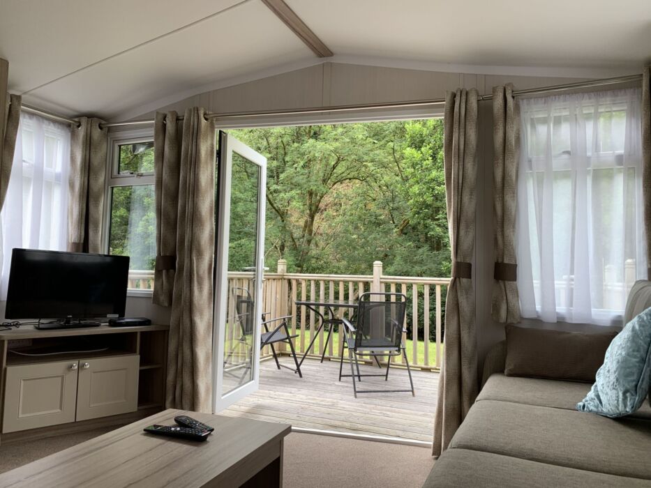Stunning two bed caravan consisting of one double, and one twin room, en-suite toilet room and separate shower room, fully equipped kitchen and dining area, lounge with patio doors that lead on to the verandah, overlooks the fishing stream
