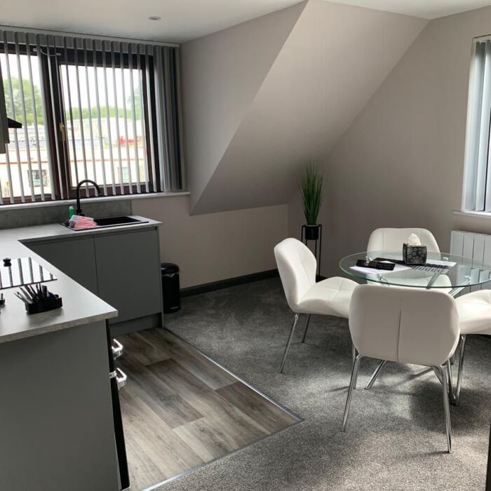 Sunset Studio Apartment offering two double king size bed with back lit LED head board for night reading, with sitting lounge area with flat screen TV, separate room with fully fitted kitchen along with integrated microwave oven, electric oven and hobs, fridge / freezer, crockery, knifes and forks, kettle, toaster and complimentary tea and coffee, shower room with WC and porcelain wash basin, separate dining area, great sea views of the Cardigan coastline, complementary towels and beds made up on arrival