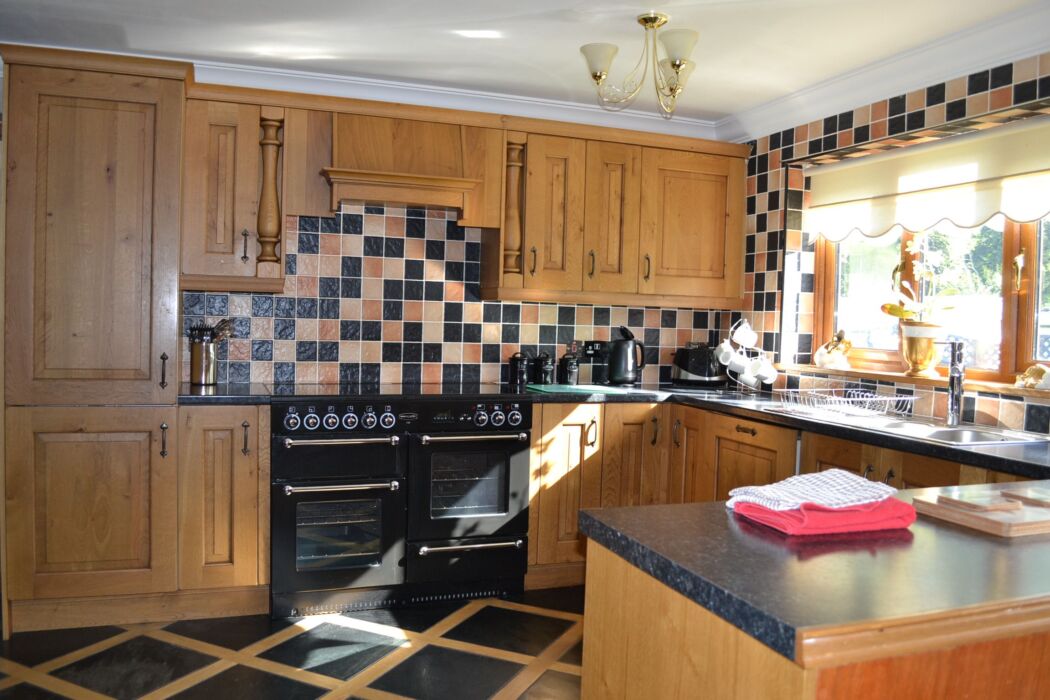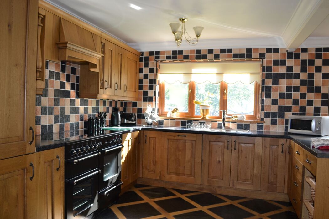 Fully fitted hand made kitchen to high finish, dining area and breakfast bar, large lounge with TV, sliding patio doors that lead out on to the garden and patio area, tables and chairs patio set countryside views.