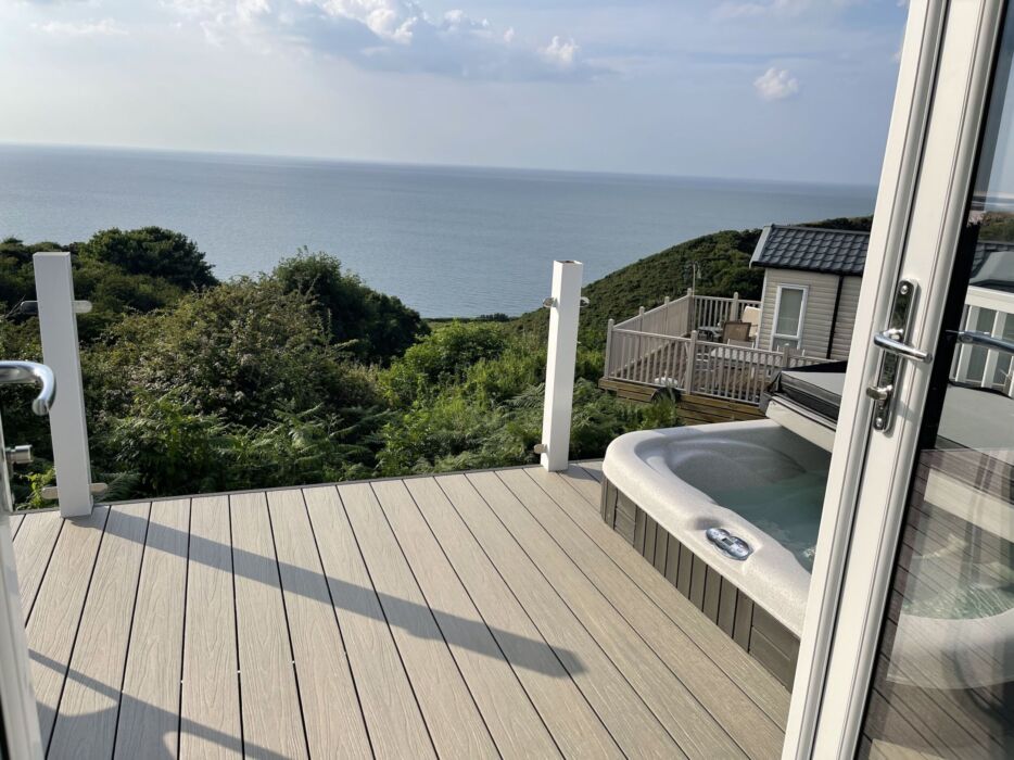 Located at Wide Horizons, stunning unspoilt sea views of the Cardigan Coastline as far as the eye can see, a top of the range spacious lodge finished in a nautical theme with matching sea blue colours throughout, fully equipped kitchen, dining area, lounge with patio doors that lead onto the veranda and hot tub. The lodge has one king size double bed with bath tub next to it and with an en-suite shower room and double sink for his and hers, come along and indulge.